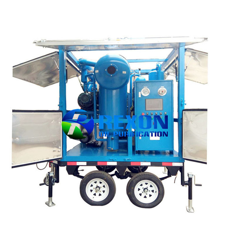 Rexon kapalı ve mobil tip transformatör yağ arıtma makinesi ZYD-WM-150 ((9000LPH) tam kapak olarak alüminyum alaşım malzeme alır,ve 4 büyük araba tekerleği ile donanımlı güçlü bir römork kullanırZYD transformatör yağ arıtma tesisi ile aynı işlevleri, hızla su, iz su, gaz, partiküllerin yanı sıra asetilen, hidrojen,metan ve diğer zararlı bileşenler, yağın dielektrik sertliğini 75 ~ 85KV'nin üzerinde artırmak için etkili bir şekilde yalıtım yağından. Çeşitli yerler için transferör yağı arıtma ve yağın bakımı için uygundur. Bunun yanı sıra bu sistem aynı zamanda aspirasyon transformatörleri ve yağ enjekte eden transformatörleri de kullanabilir.