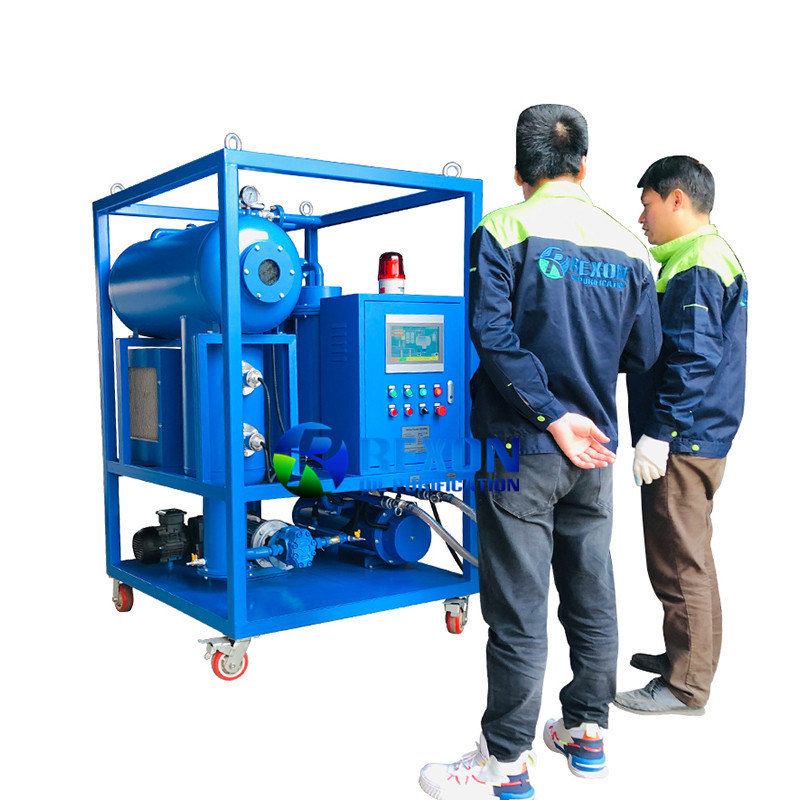 REXONYüksek verimli vakum türbin yağı dehidratörü ve filtreleme makinesi TY-10, özellikle demulsifiye edilmiş türbin yağı tedavisi için tasarlanmıştır.Turbin yağından gelen gaz ve kirlilikler, hızlı demülsifikasyon ve dehidrasyon.Türbin yağının yüksek su içeriği, kolay emülsifikasyon ve yüksek kirlilik içeriği niteliğindeki yağın yeni yağın doğasını geri kazanmasını amaçlamaktadır. This model is installed with PLC (Programmable logical control system) which can control the equipment automatically to every stage of its process and ensure its process and ensure its safe operation on site and on line without human supervision.
